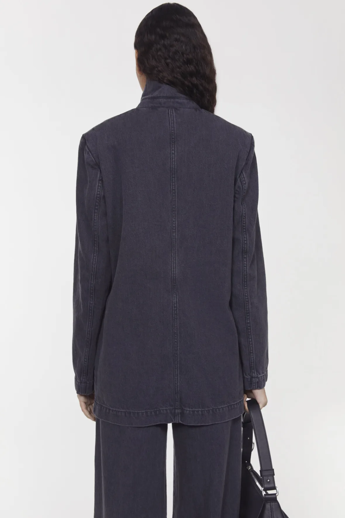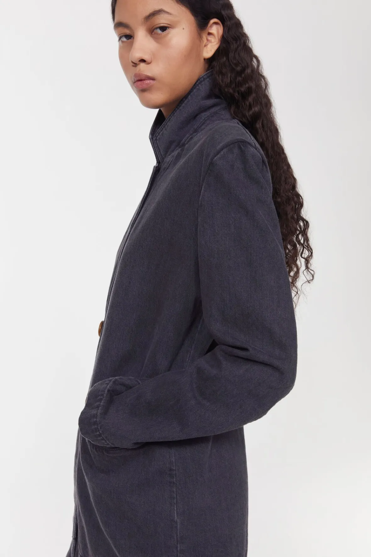Presented in denim, the Delphi blazer offers a fresh take on tailoring. Made from organic cotton with a hint of stretch, it is shaped to a single-breasted silhouette that can be adjusted with an additional button below the lapels for alternative styling.
