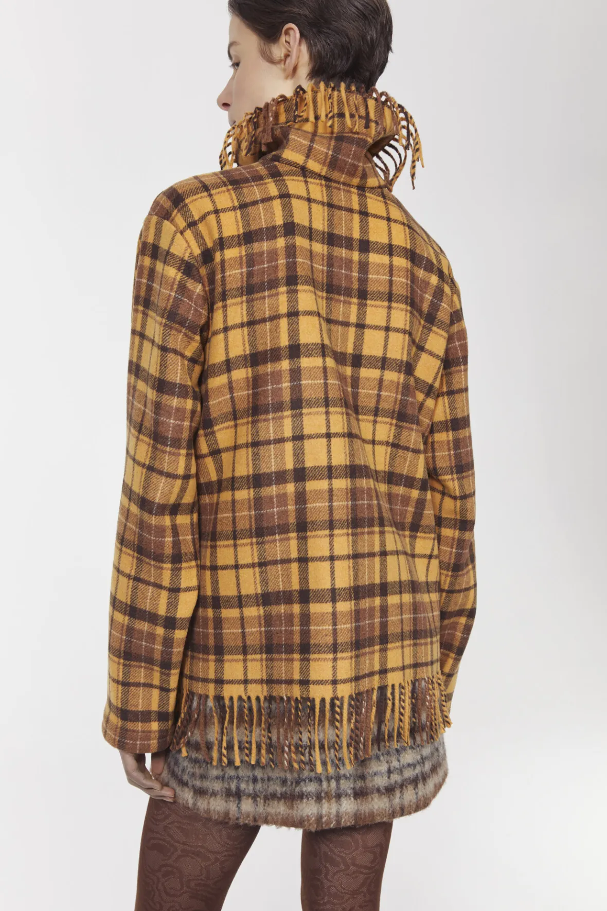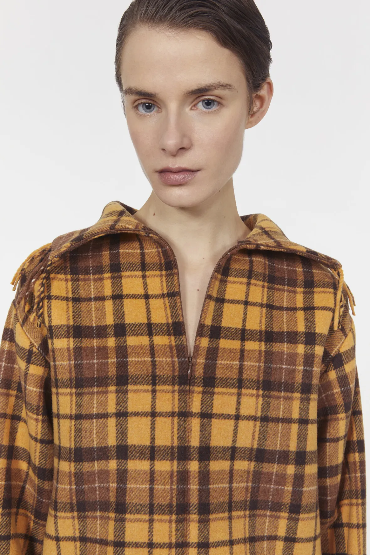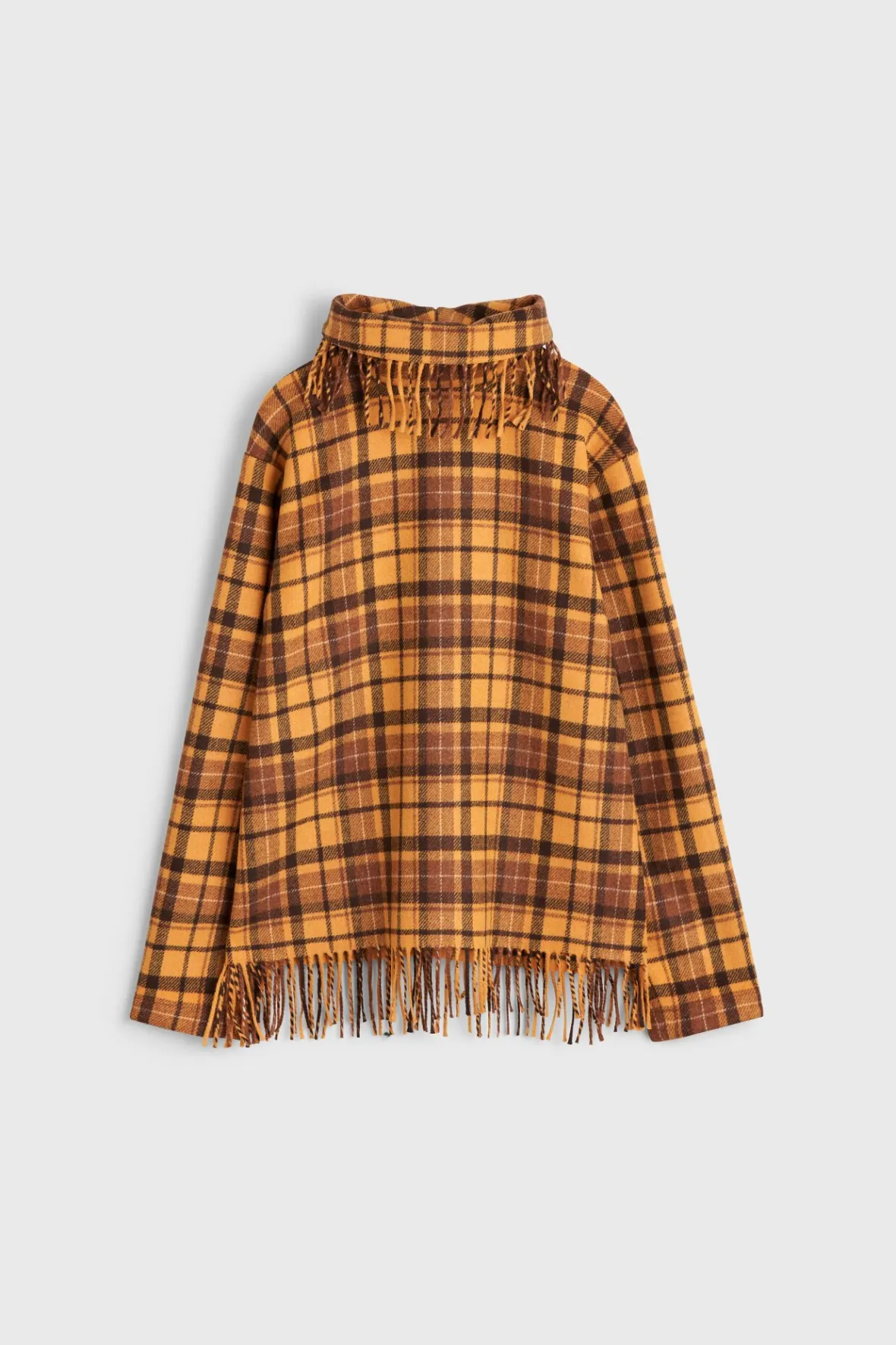 An individualistic approach to personal style can be seen throughout the Savage sweater. Made from a blend of wool with a ‘70s check finish, it has dropped shoulders and a high neckline that is trimmed with fringing. Pair with a brushed check skirt to tap into the eclectic mood of the season.