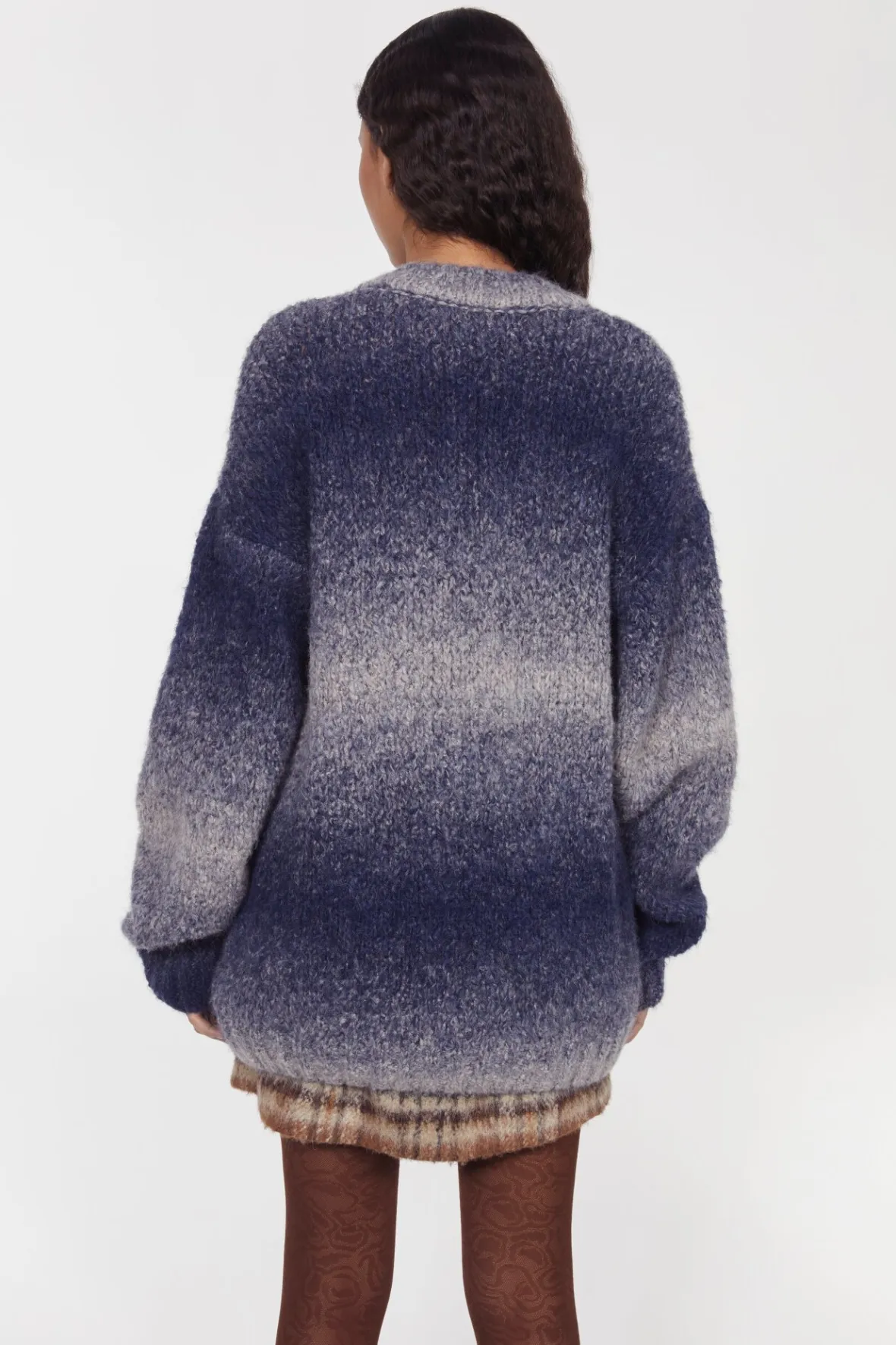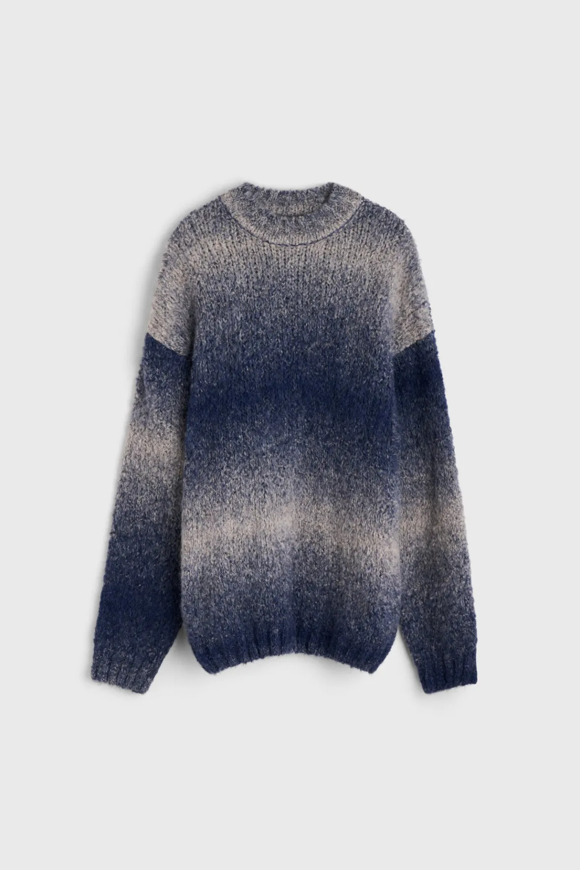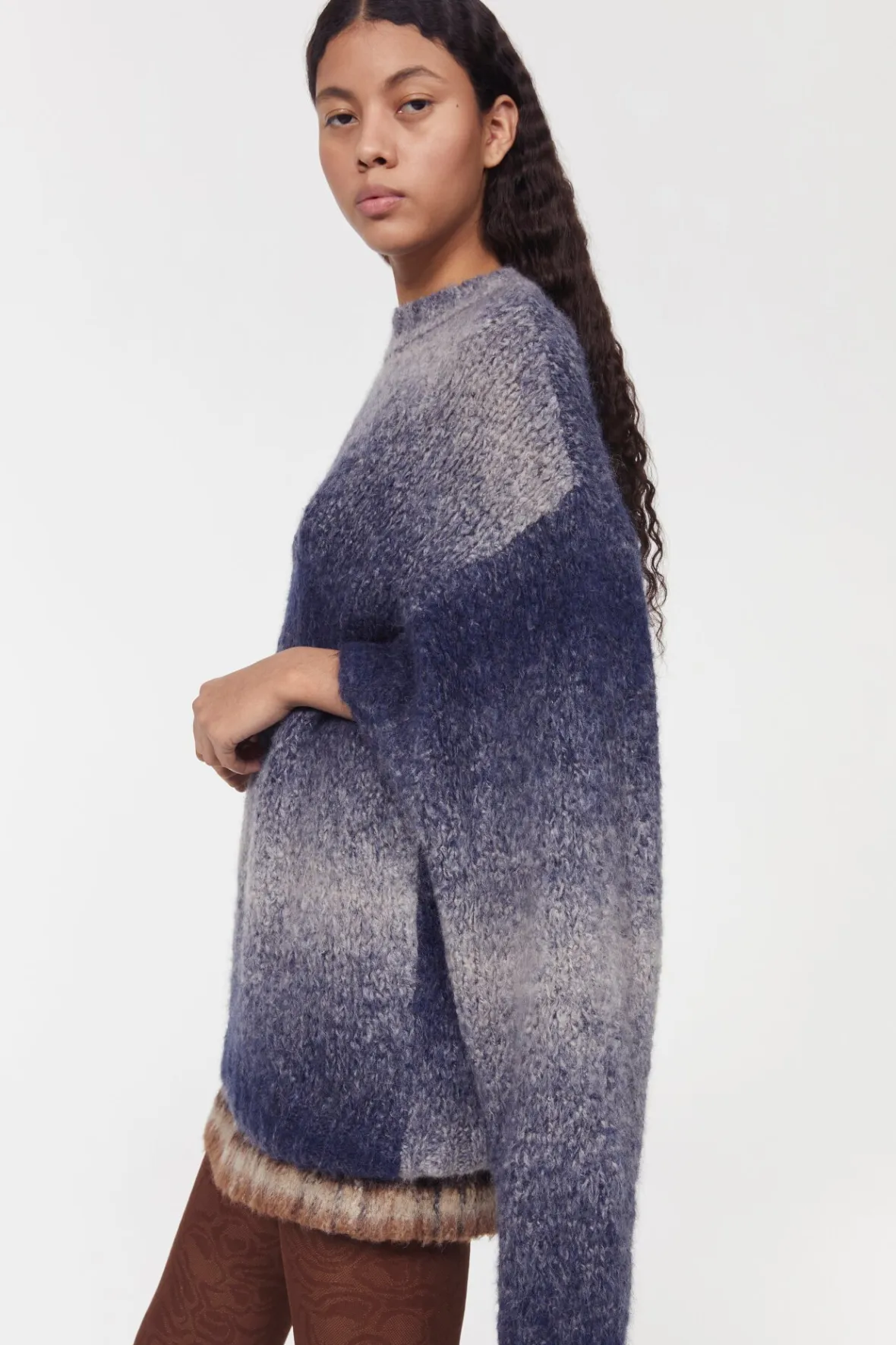 The season’s expressionist influences extend to knitwear this season, as exemplified by the Sri sweater. Spun from a supremely soft alpaca wool-blend to an oversized silhouette, its sleeves can be pulled out for a cape effect. Please note that due to its space dyed yarn fabrication, every garment will have a unique degradé effect.