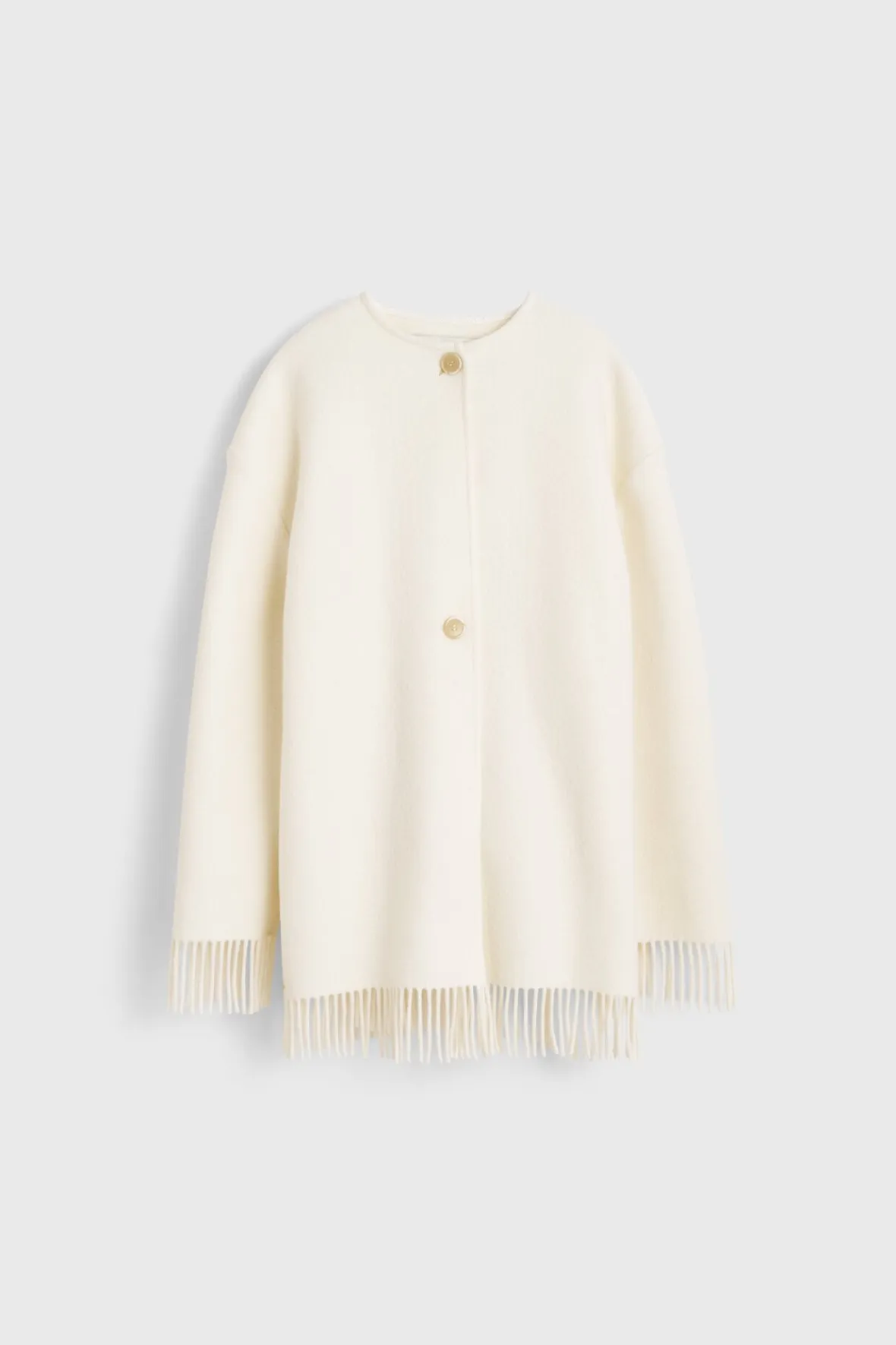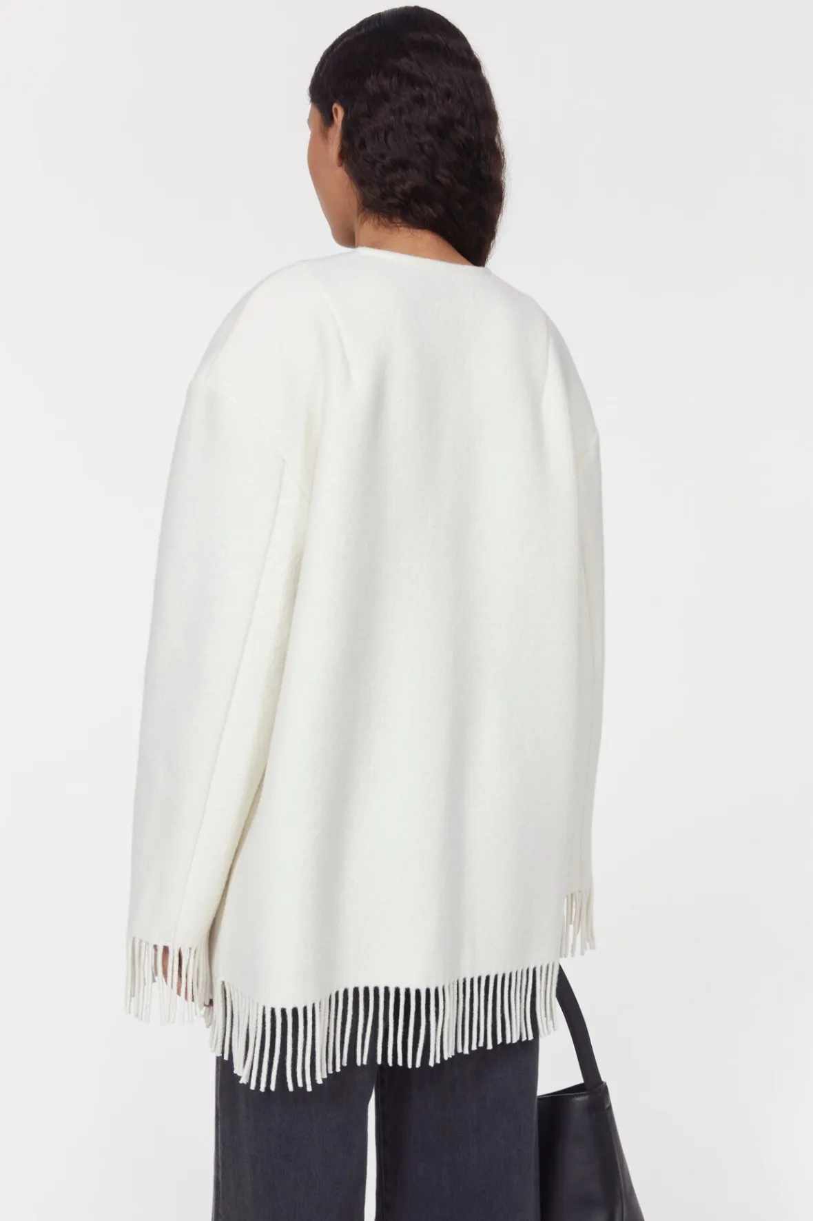 Informed by a minimalist interpretation of bohemia, the Agnes jacket is crafted from a soft blend of wool to a structured, boxy silhouette. Fastening with a duo of buttons, the design is punctuated by fringing at the cuffs and hemline. Pair yours with printed trousers and expressive earrings for a new-season workwear update.