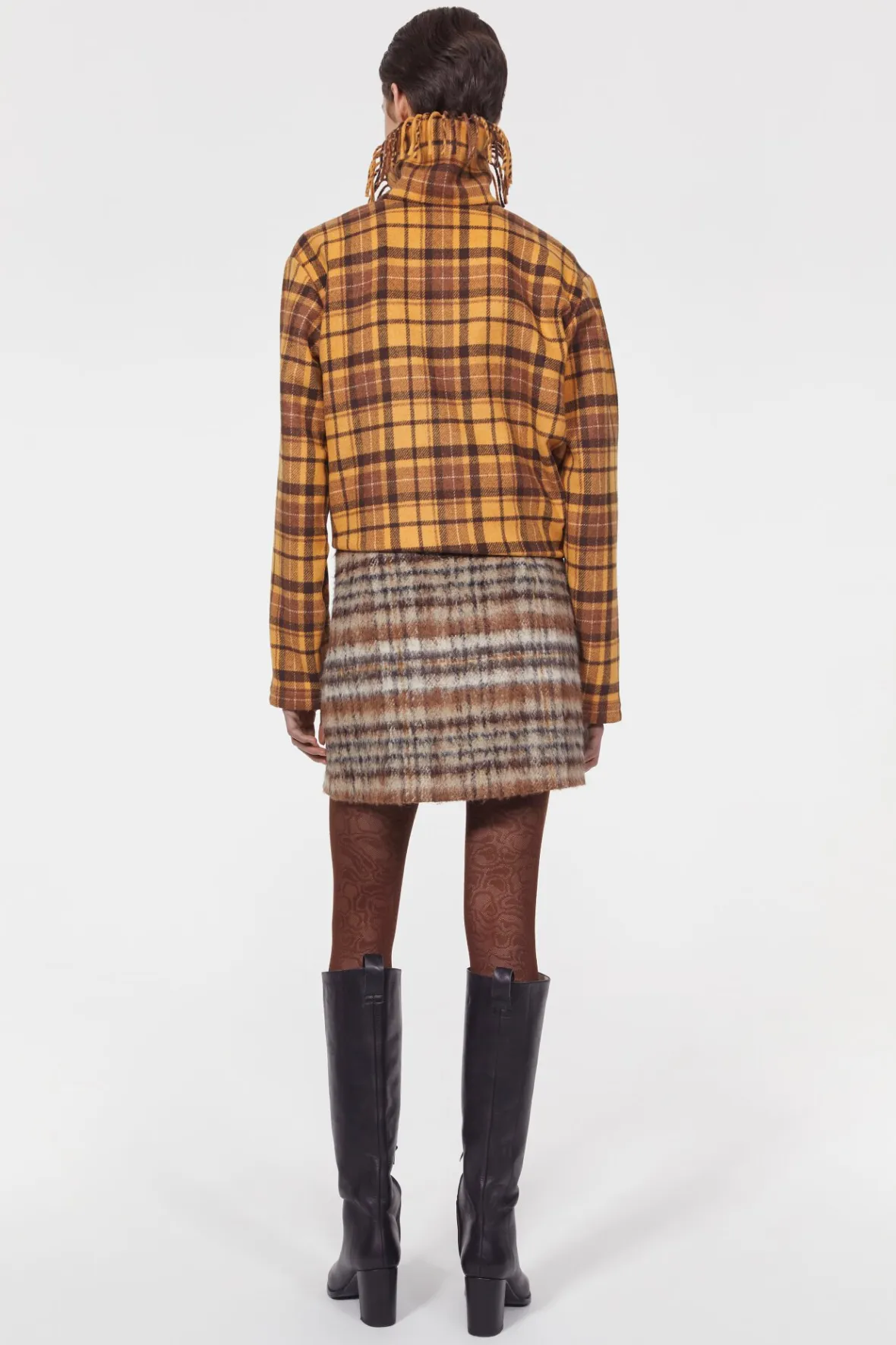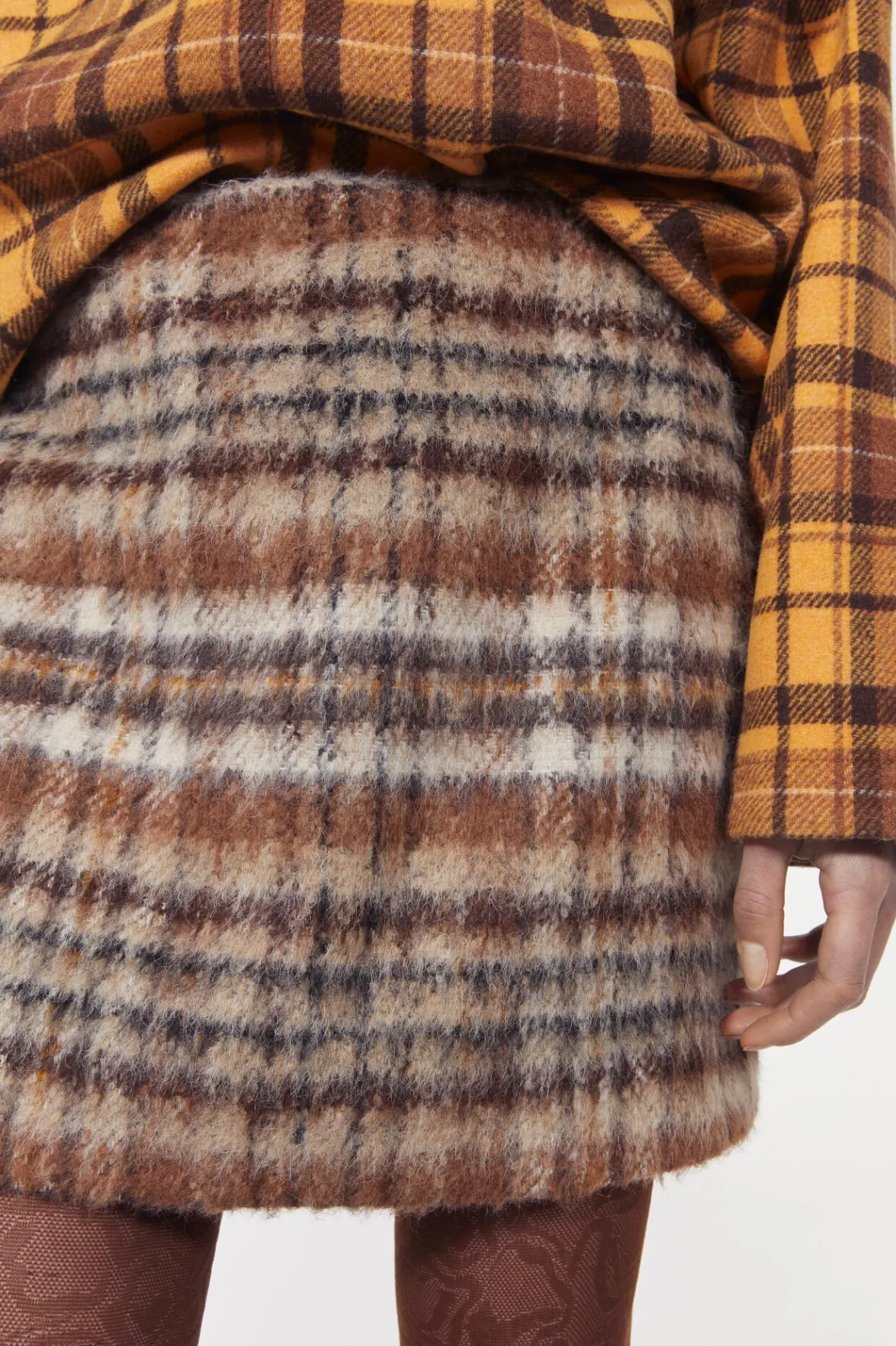 An almost painterly effect is applied to the brushed motif seen across the Seine skirt. Made from a polyester and wool blend, it sits high at the waist and falls to a straight silhouette — making it the perfect partner to the season’s oversized knitwear.