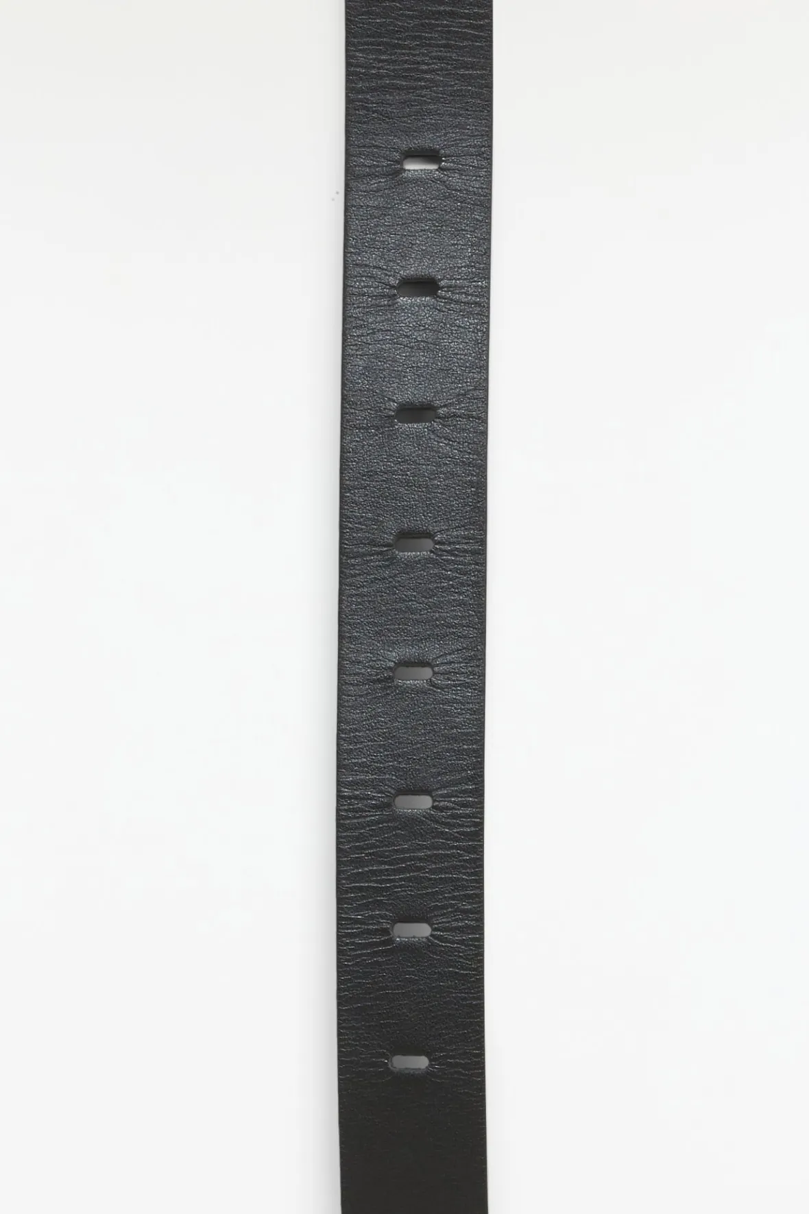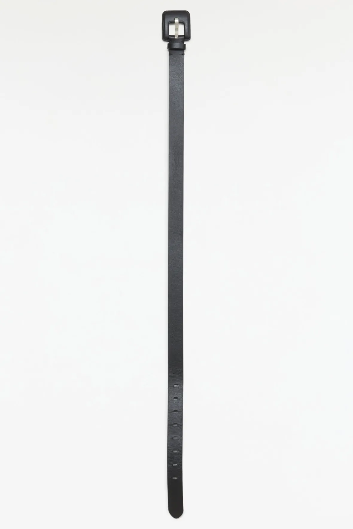 Abelia is a plain leather belt with a leather covered buckle. wear with all your pants or choose one size smaller and wear it in waist.