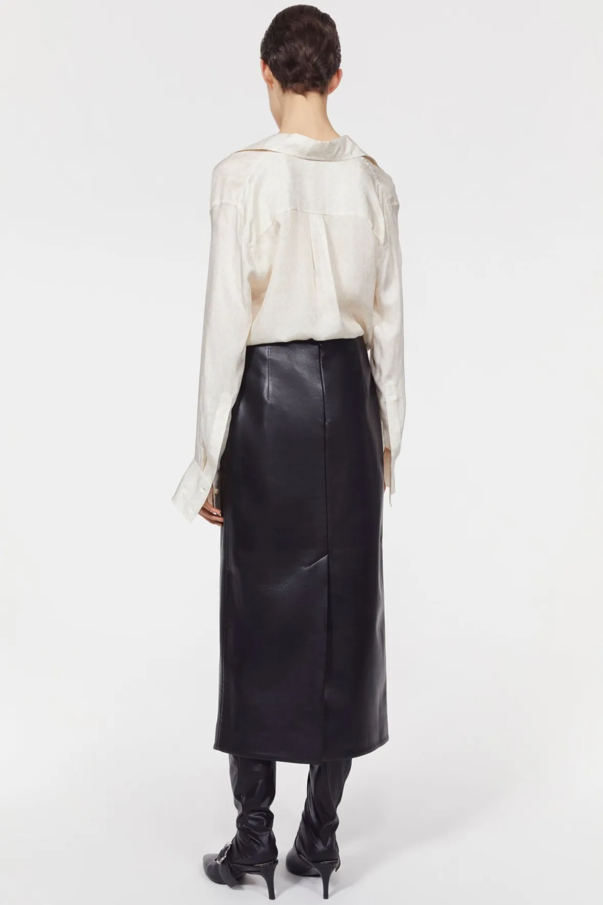 Crafted from supple leather, the Helen skirt is detailed with exaggerated stitching — a key motif of the season. Sitting high at the waist, this fitted design falls at a midi hemline that is ideal for showcasing the heeled Dolores boots. Pair yours with expressive knitwear for considered contrast.