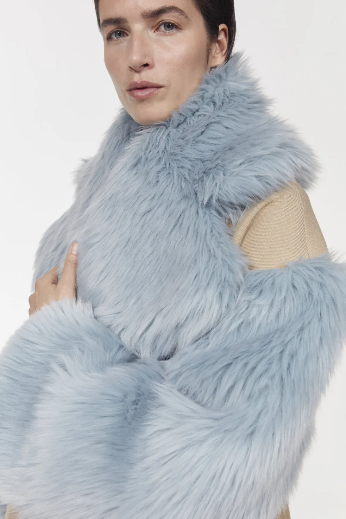 Add tactile interest to outfits with the detachable Hyper collar. Crafted from faux fur in a cloudy gray hue, it fastens…