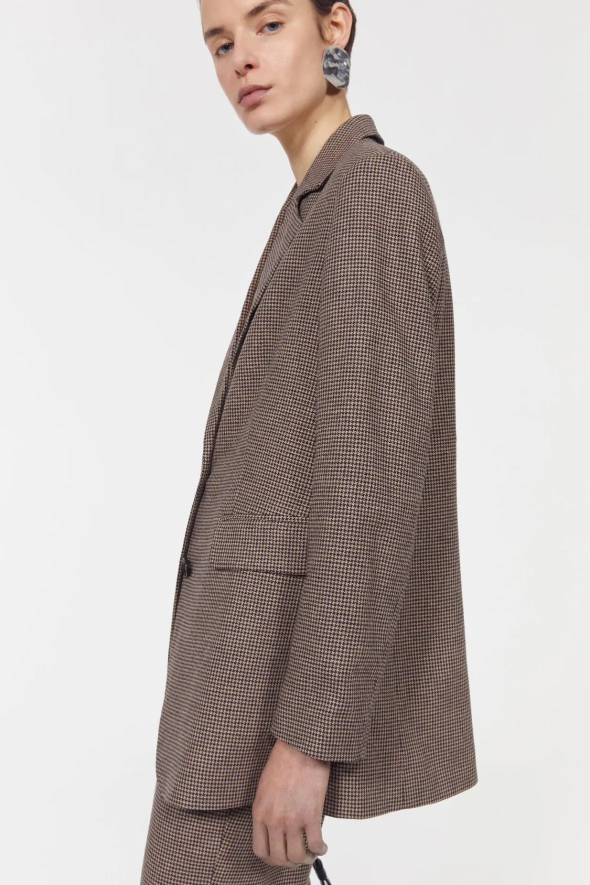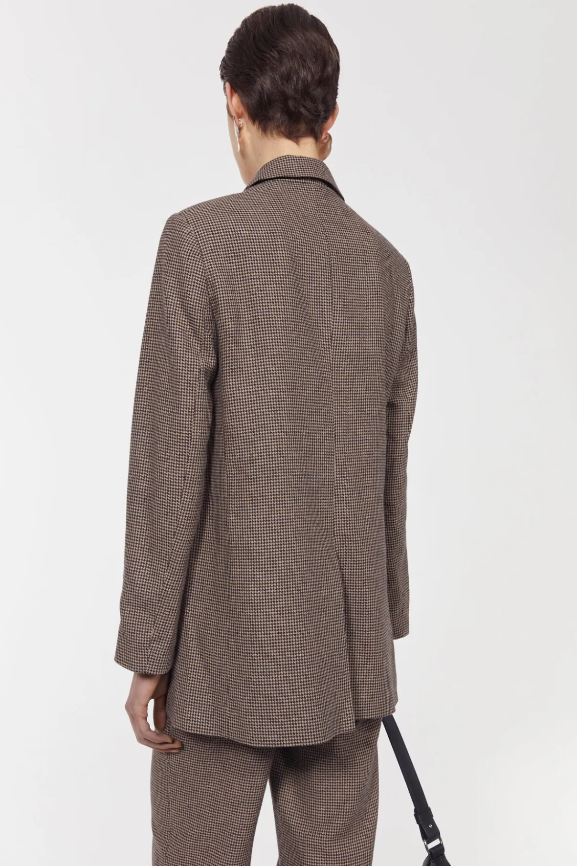 Bring a tailored finish to bohemian pieces and eclectic ensembles with the Viola blazer. Crafted from certified viscose with a houndstooth motif, it is shaped with sharp shoulder pads, flap pockets and a single-breasted front fastening.