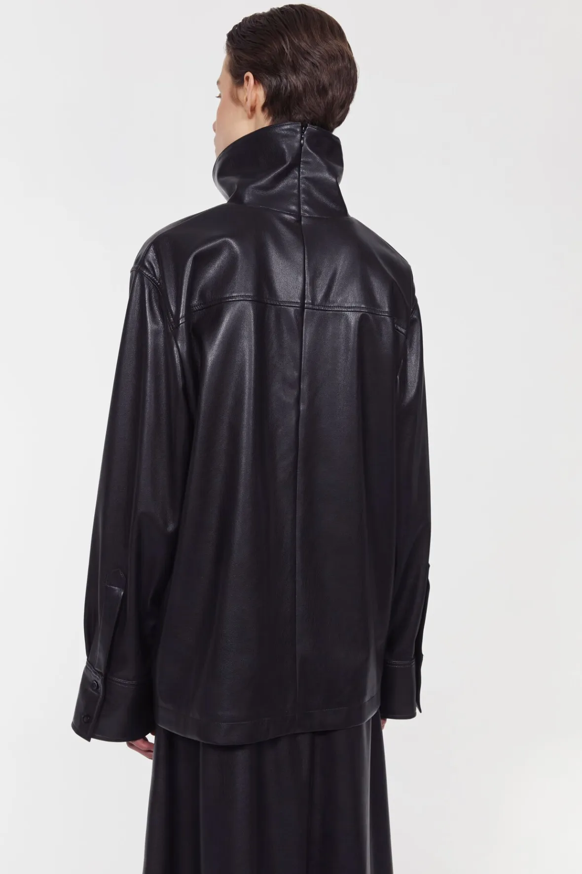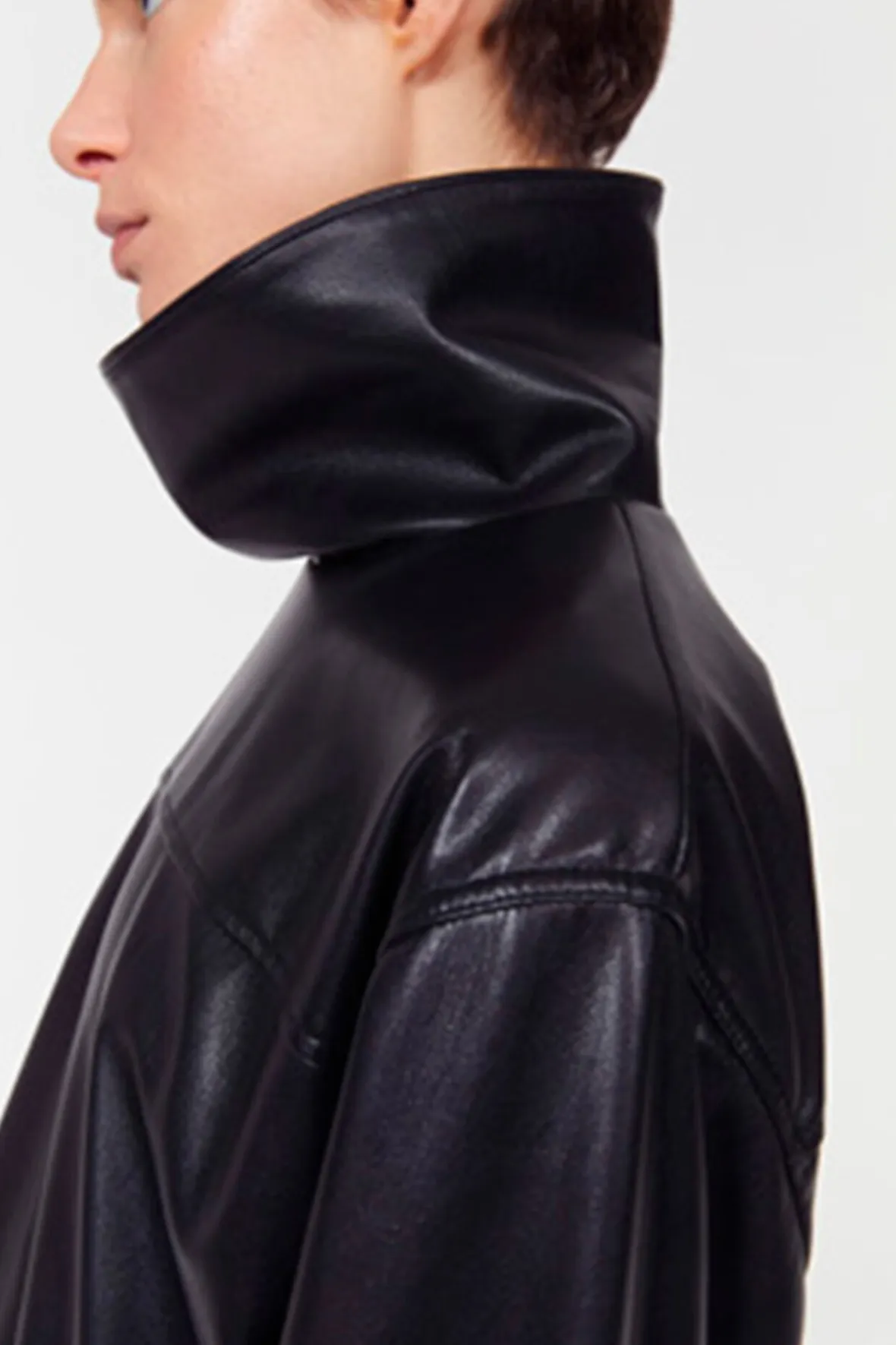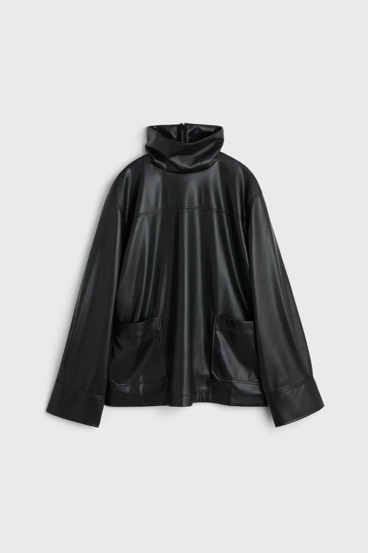 Complement printed trousers and knit skirts with the faux leather Cara top. Soft and supple to touch, it has a funnel neckline, dropped shoulders and front patch pockets. Pair with the matching Marlene skirt for a co-ordinated, and decidedly contemporary look.