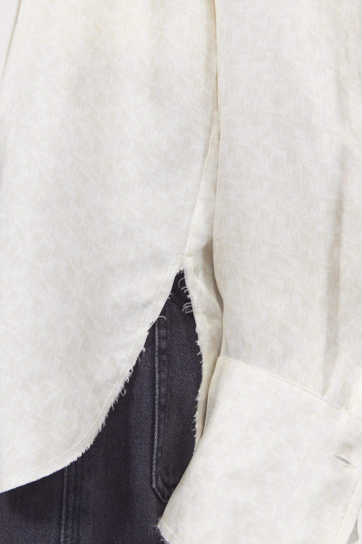 Raw edging and an artful print bring bohemian energy to the Sofia shirt. Made from FSC-certified viscose, it has a number of classic tailoring details, including a sharp collar, wide cuffs and petite mother-of-pearl buttons. Allow yours to add interest to classic suiting.