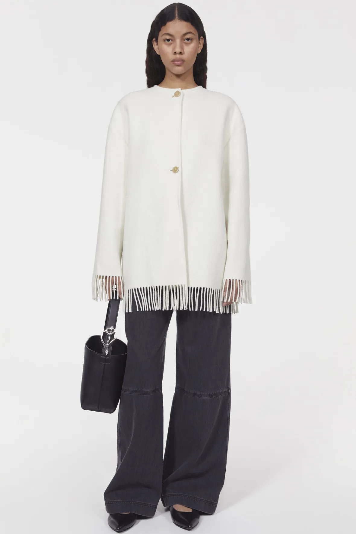 The ideal accessory for the ‘Strict Hippie’, Rodebjer’s Shell bag is crafted from smooth leather to a spacious tote silhouette. It is fitted with a zip closure, a slip pocket, and embellished with a signature shell-shaped buckle — a nod to nature’s organic artistry.